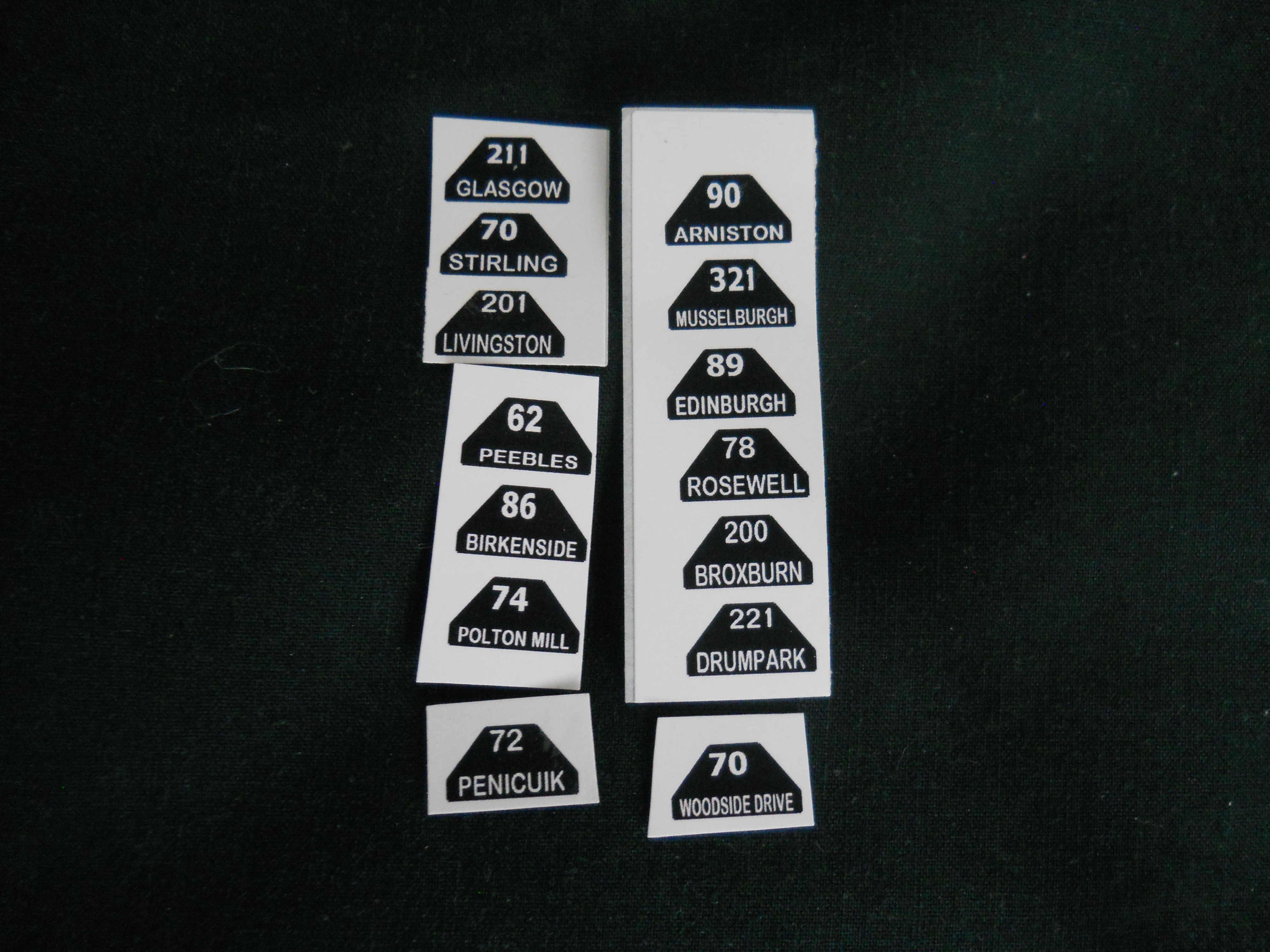 Eastern Scottish Self Adhesive Routes1.76th/00 Scale With self adhesive routes there is no need to remove the original routes, no messing with water, just cut to size, peel the back then stick to the bus. Thanks for looking